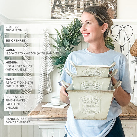 Vintage Inspired Heirloom Garden Supply Metal Planters, Set of Three (Online Exclusive)