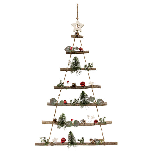TWIG CHRISTMAS TREE WALL HANGER W/MUSHROOMS