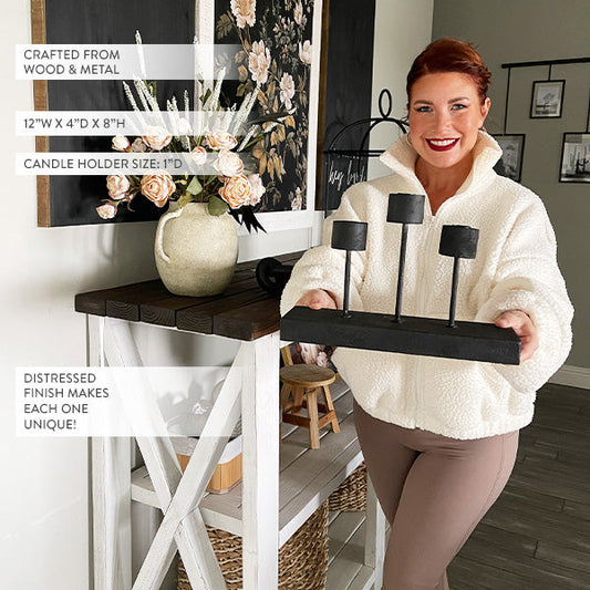 Distressed Black Metal Candle Holder (Online Exclusive)
