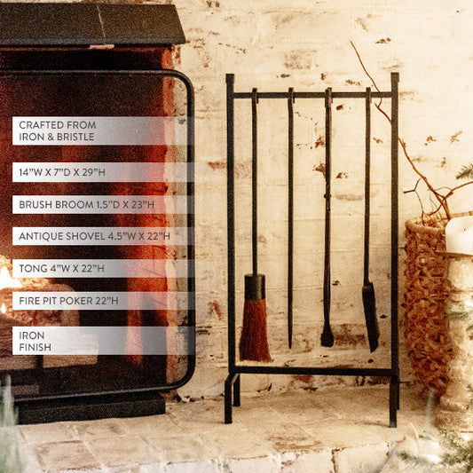 4 Piece Black Iron Fireplace Tool Set (Online Exclusive)
