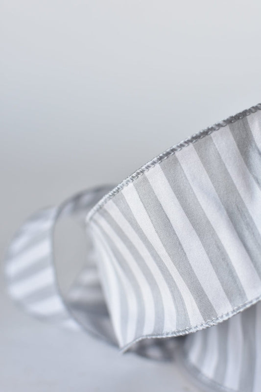 2.5" x 10yd White + Gray Striped Faux Dupioni Silk Ribbon (Online exclusive)