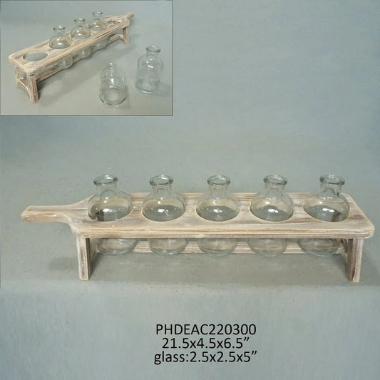 BOARD & BOTTLE CENTERPIECE W/ FIVE BOTTLES