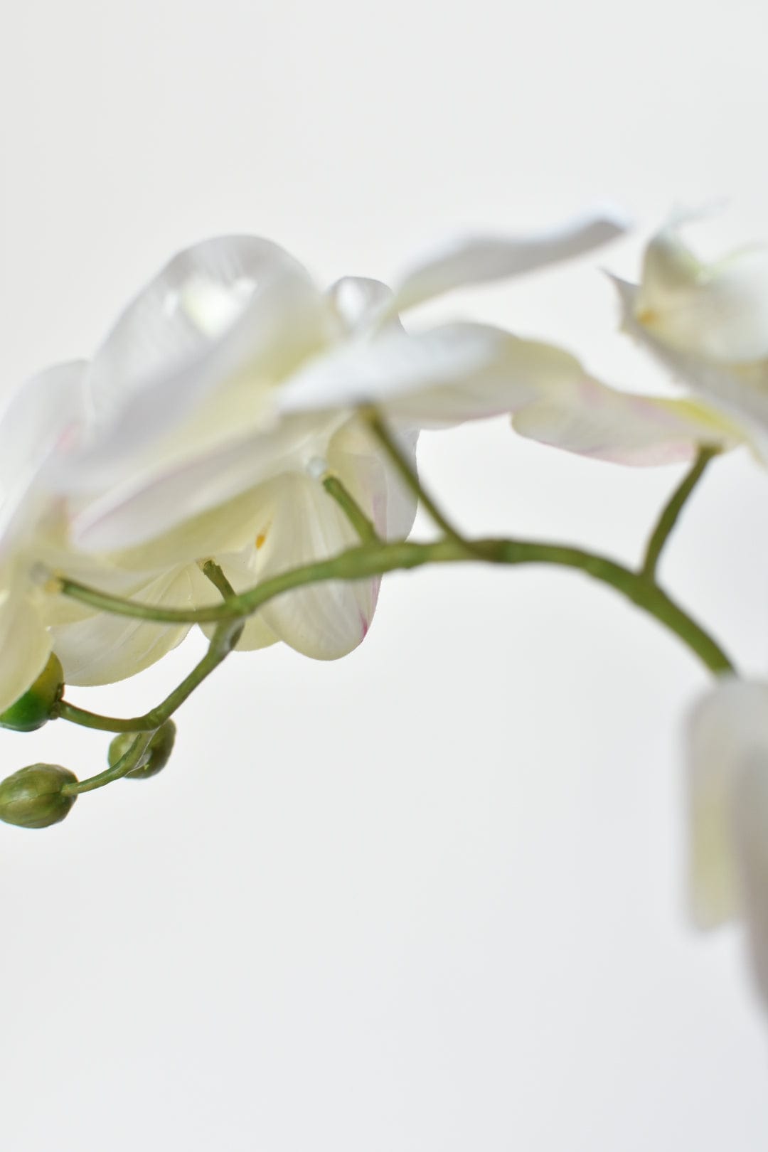 Is there anything more beautiful to add to a space than a gorgeous Orchid? The good news is with our beautiful faux stems, you don't have to worry about watering, replanting, or proper sunlight! This made arrangements features 2 beautiful stems that you can bend and manipulate to the shape you desire. Perfect for a bathroom vanity, or a tight space where you want to add some vertical color!