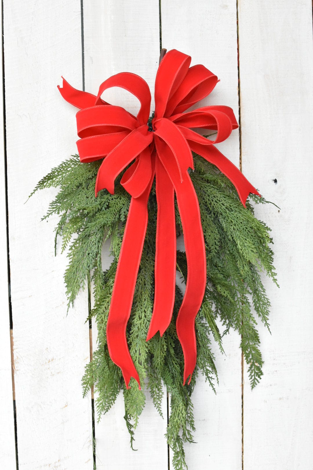 If you're looking for a classic greenery swag that you can slap a simple bow on and look like a thousand bucks, this is your answer! The perfect size and shape to add under an outside lantern or light, or even add to a front door, it looks like you just grabbed some cedar stems and made a beautiful bundle.