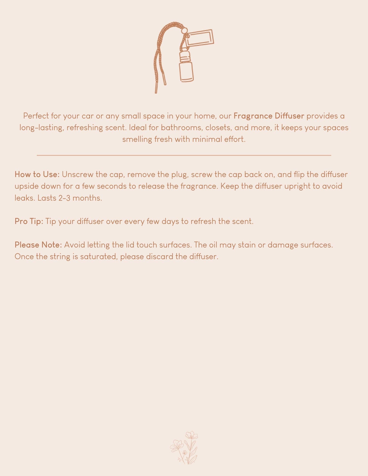 Perfect for your car or any small space in your home, our Fragrance Diffuser provides a long-lasting, refreshing scent. Ideal for bathrooms, closets, and more, it keeps your spaces smelling fresh with minimal effort.
