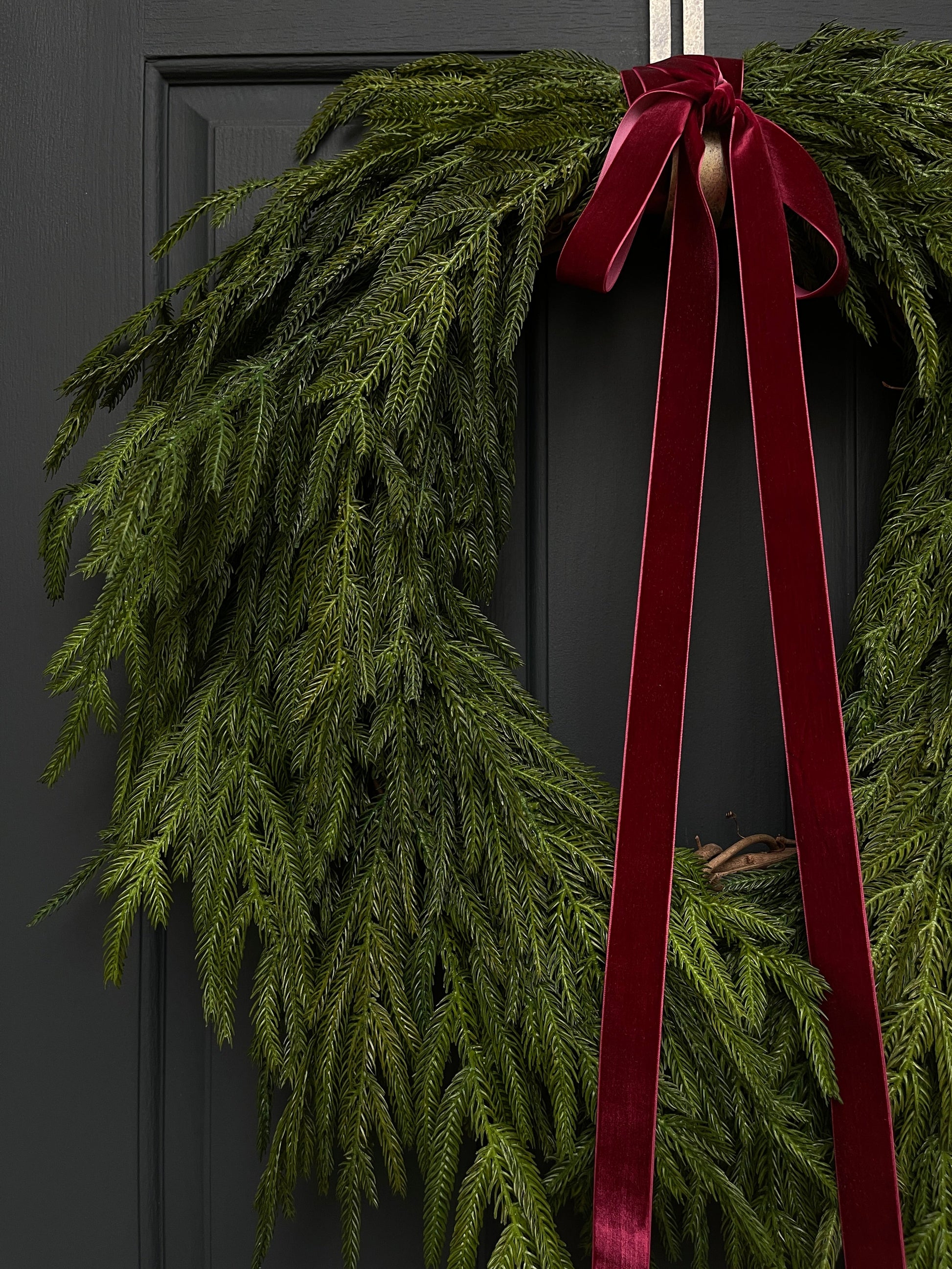 Faux Norfolk Pine Wreath with Red Velvet Bow (Online Exclusive)