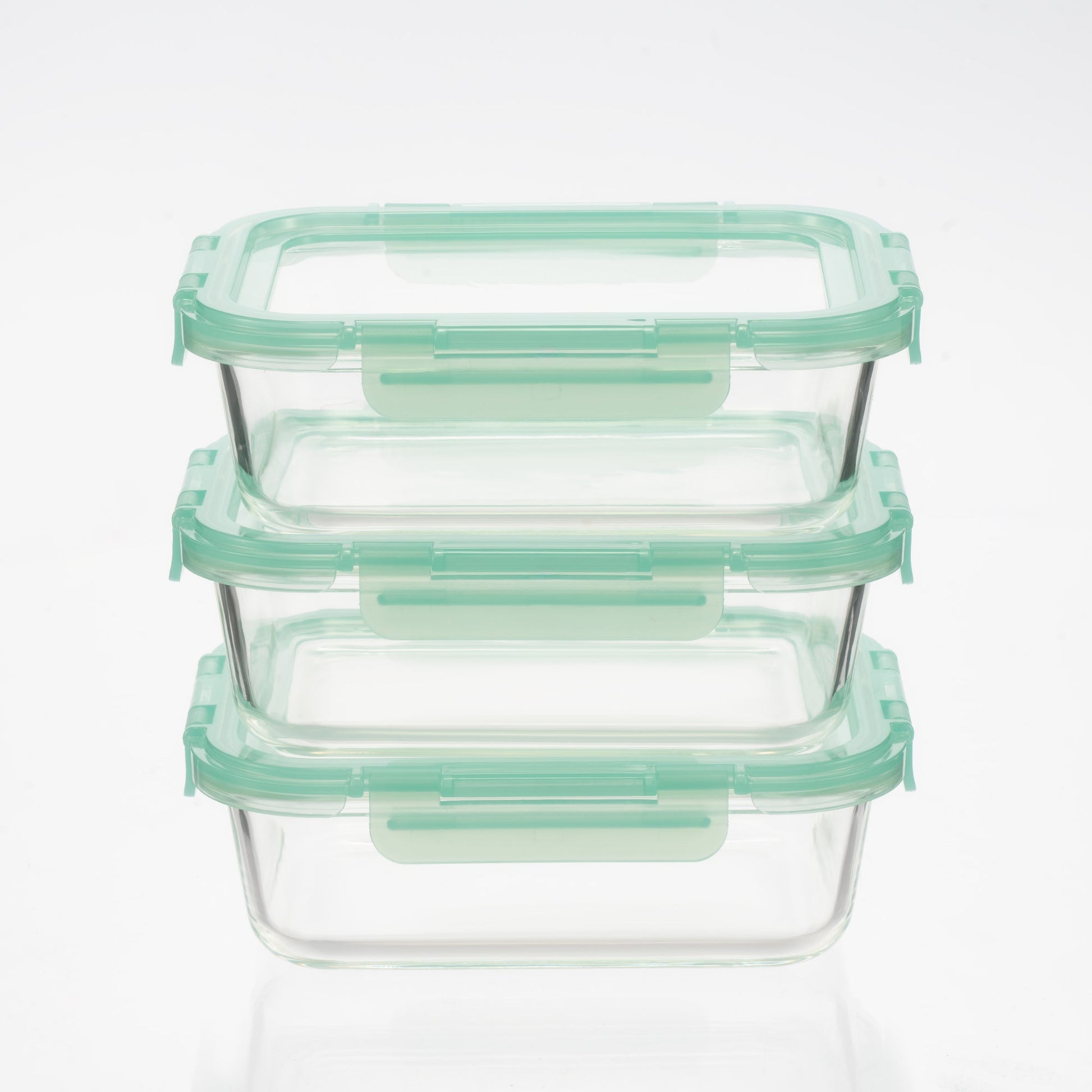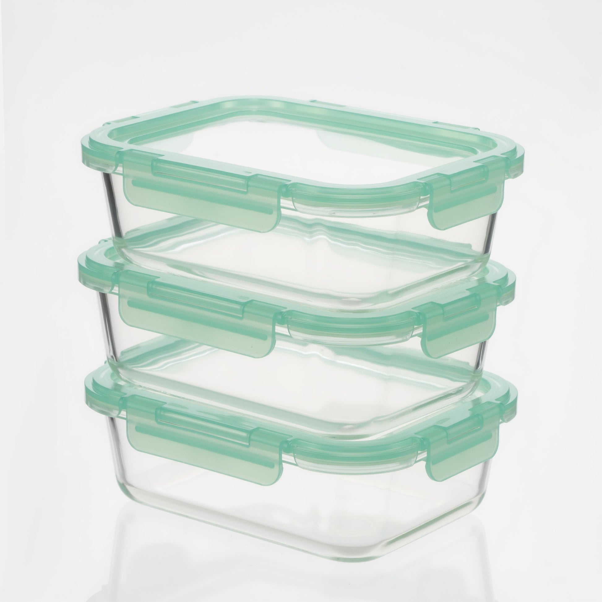 Set Includes: 3 Glass Containers + 3 Teal Silicone Lids
