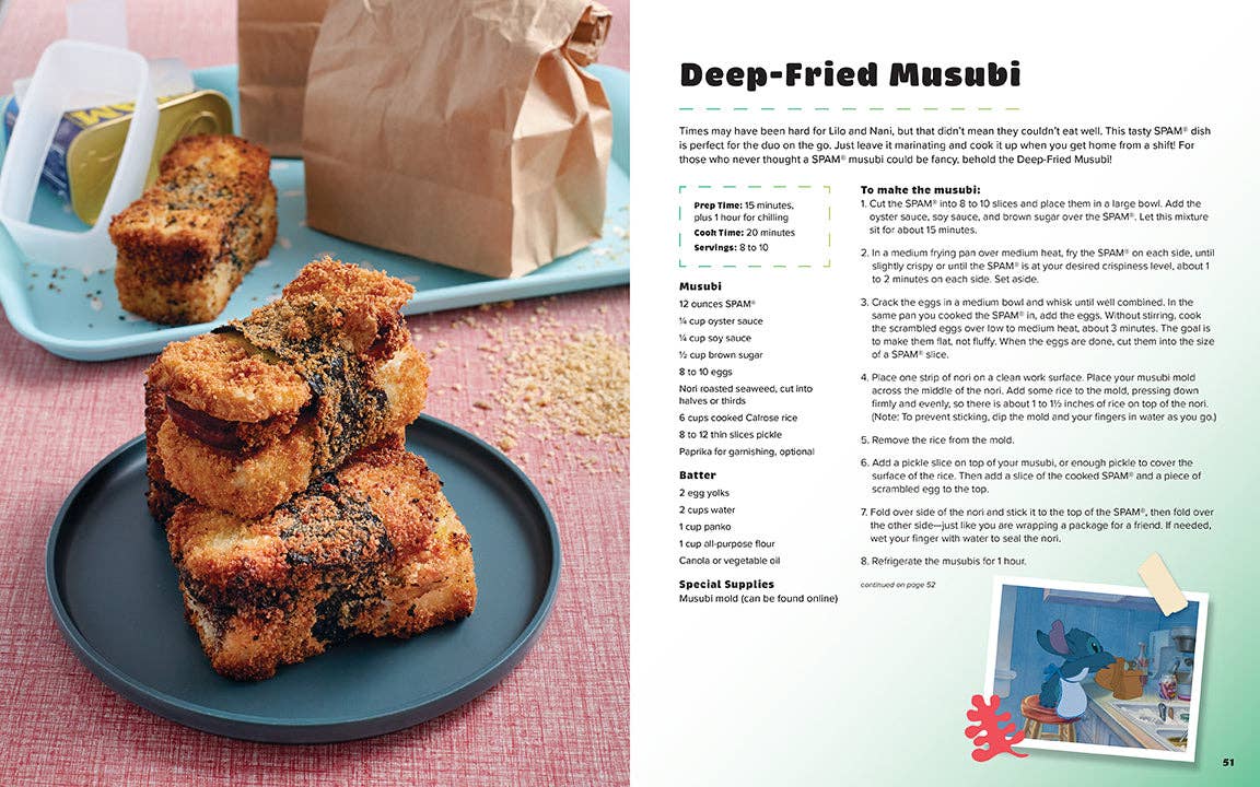 Create delicious Hawaiian recipes inspired by Disney’s Lilo and Stitch with your ohana with Lilo and Stitch: The Official Cookbook! The book features both traditional Hawaiian dishes––such as Ahi Poke, Chicken Long Rice, and Lomi Salmon––and original recipes based on foods featured in the film and the beloved characters who enjoy them, including Hukilau Haupia Cake, Pelekai Sweet and Sour Pork, and David’s Dawn Patrol Loco Moco. With easy-to-follow instructions and beautiful food photography, this cookbook will inspire the whole family, from beginner to advanced chefs alike. From appetizers to entrées and drinks to desserts, you’ll want to party like Lilo and Stitch with these mouthwatering Hawaiian-inspired recipes.