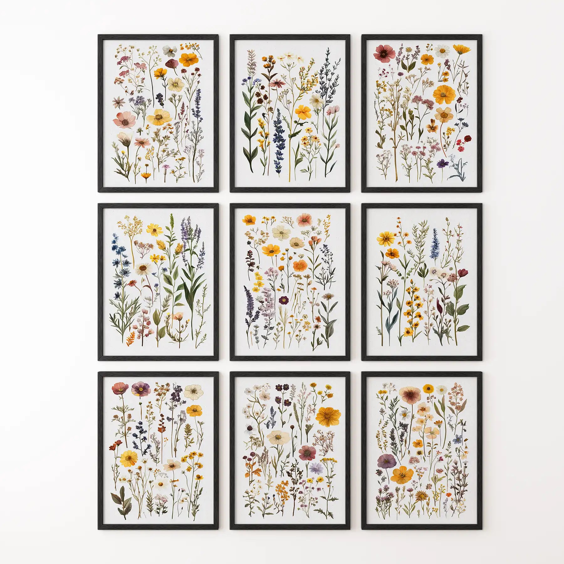 Meadow Wildflowers Prints. Floral Wall Art Set of 9 Pieces (online exclusive)