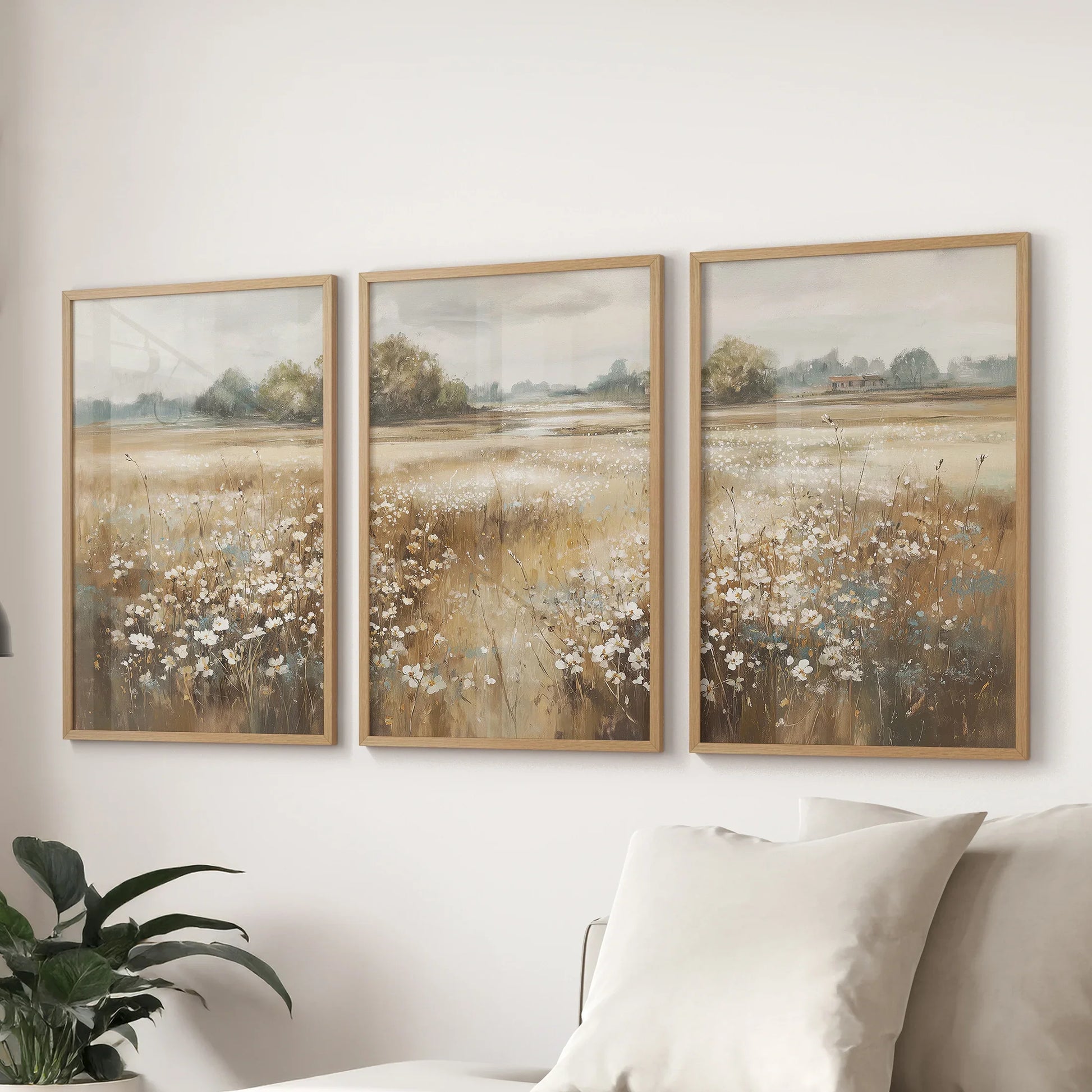 Bring warmth and calm to your space with this neutral wildflower field wall art set. Featuring soft beige and golden tones, this floral meadow print set of 3 is perfect for rustic, country, or farmhouse style living rooms and bedrooms. A peaceful nature inspired touch.