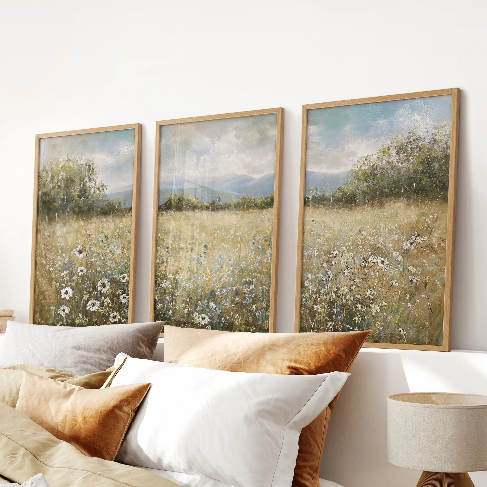 Bring nature’s beauty into your home with this Wildflower Meadow wall art set of 3. Featuring soft botanical landscapes with daisies and golden grass, these prints add a calming, rustic charm to your living room, bedroom, or farmhouse décor.