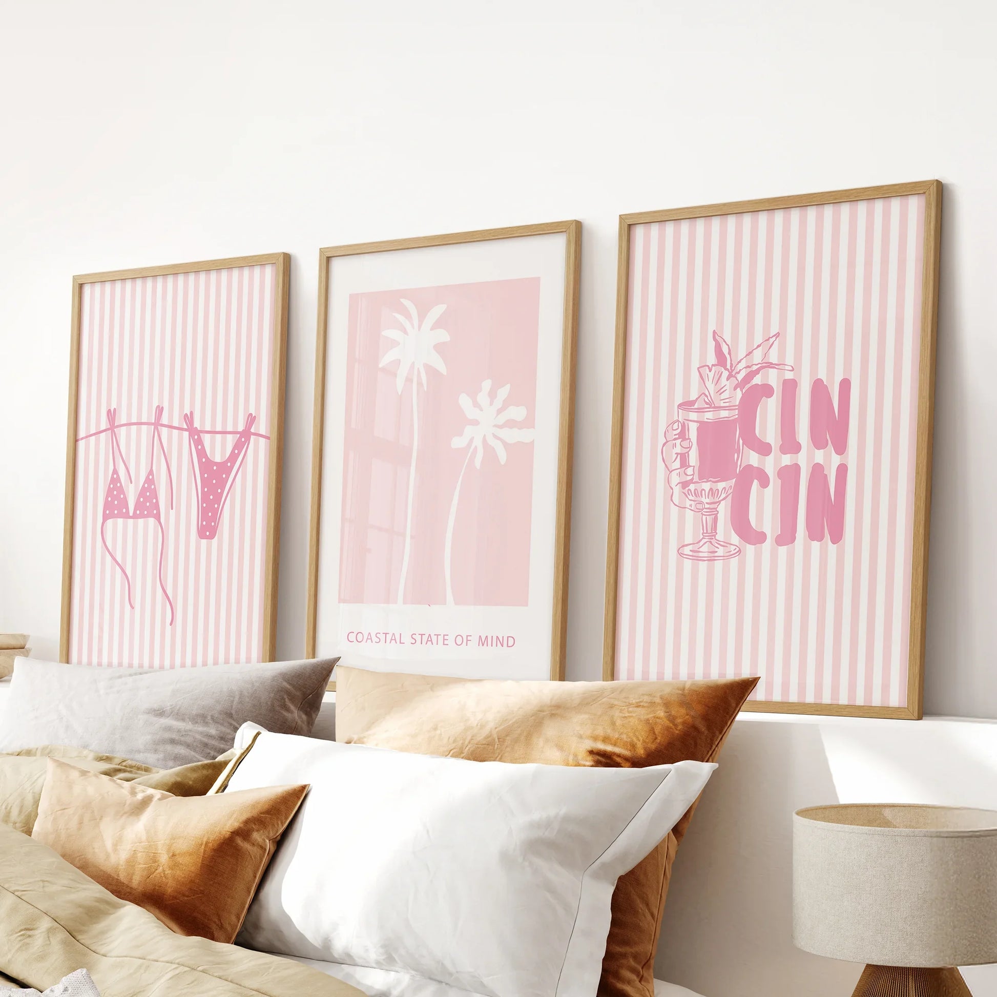 Preppy Coastal Girl Room Décor. Set of 3 Pink Summer Prints (online exclusive)