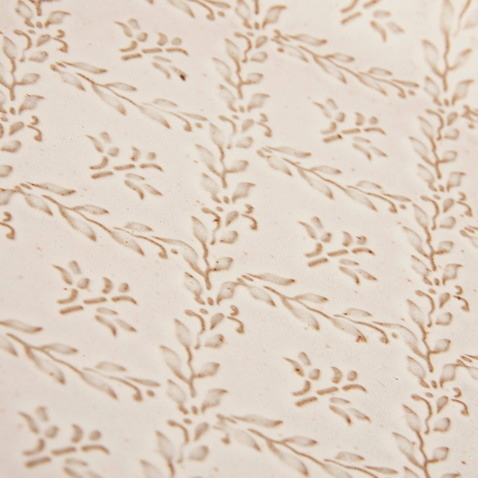 A durable salad plate from our Cottagecore Collection displaying a cream glaze finish with embossed patterns of plant vines on the inside of the plate. Embossed vine designs come through the glaze for textured detail. Our Cottage Vine salad plate features a neutral color palette to easily coordinate with a variety of table décor. Hand wash only. An elegant piece of tableware perfect for everyday gatherings.