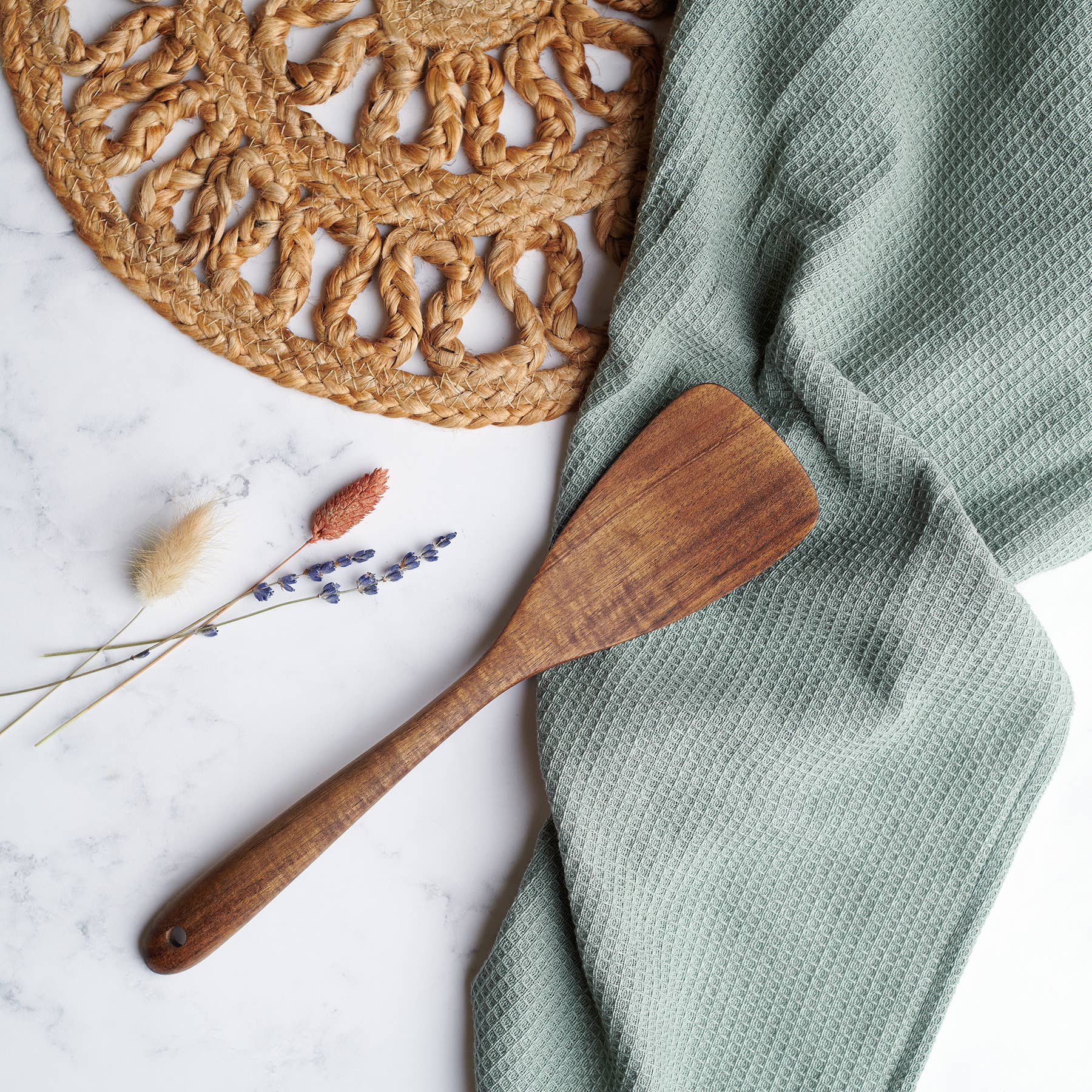 A wooden spatula displaying a simple farmhouse design. Coordinates well with kitchen décor from our Cottagecore Collection. The simple farm spatula includes hole for hanging in kitchen. Hand wash recommended.