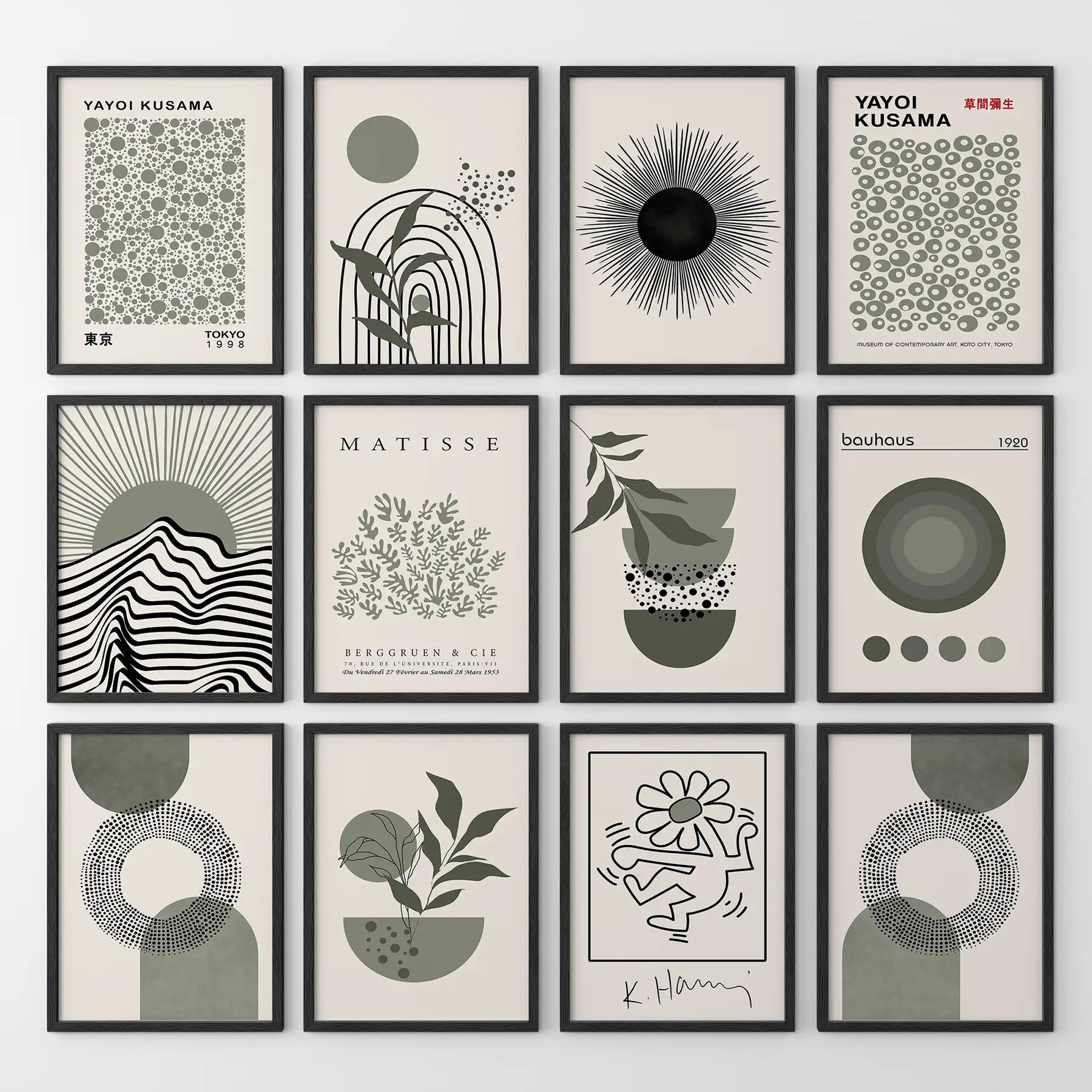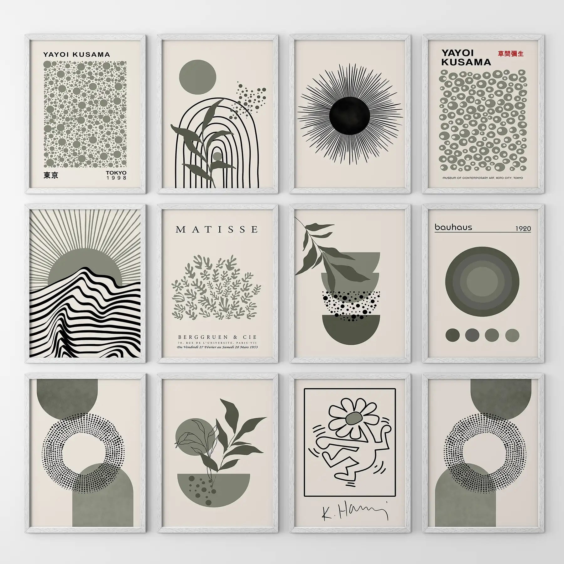 Set of 12 Sage Green Art. Abstract Matisse, Bauhaus MCM Prints (online exclusive)