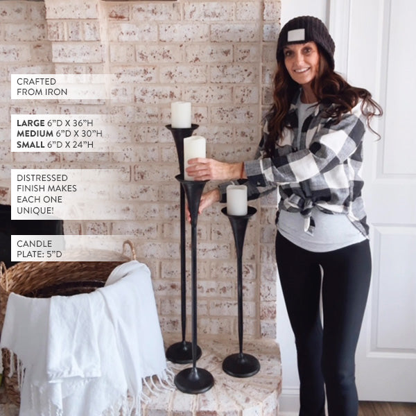 Tall Flared Black Iron Candle Holders, Set of 3 (Online Exclusive)