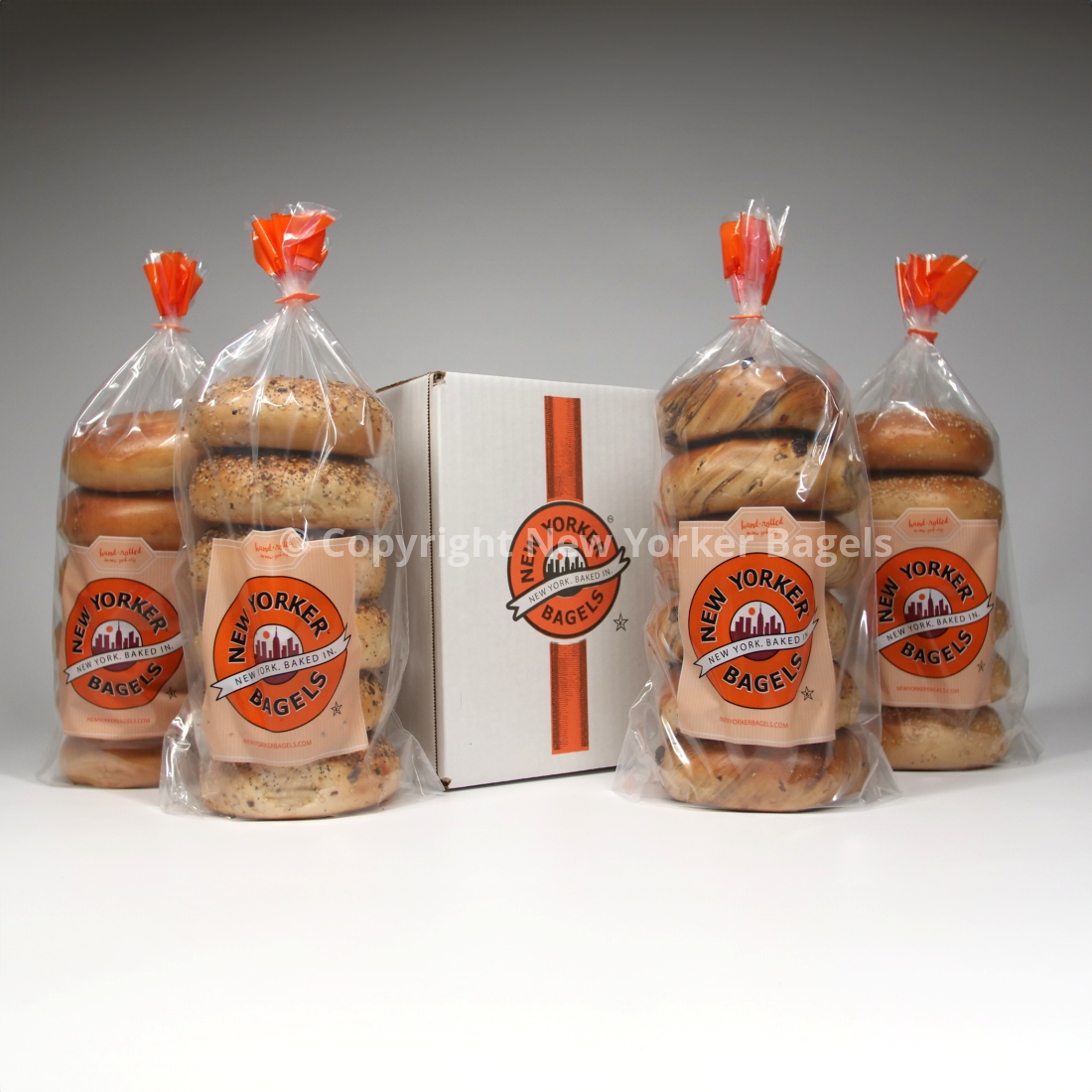Add something new to the table! A box of 2 dozen hand-rolled, large NYC bagels that includes two classic plus two exclusive bagel varieties, rolled by hand and shipped fresh. Includes:
